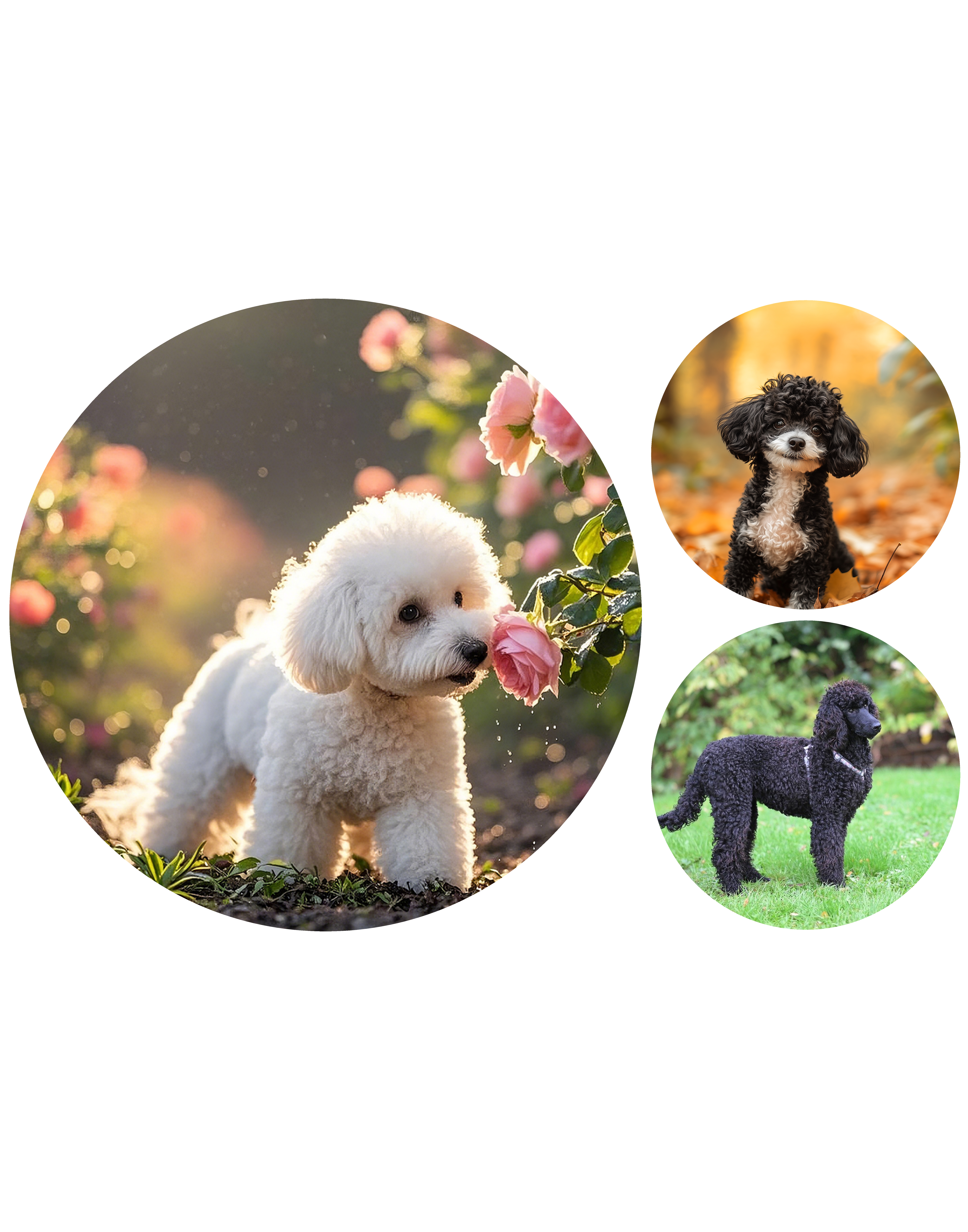 -. 여러 국가에서 푸들을 소형화하는 품종 개량이 이루어지면서 토이, 미니어처, 스탠다드 등 크기별로 세분화된 종류가 생겼습니다.